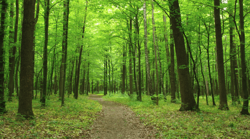 - Forêt : Une vue plongeante dans une forêt dense avec un chemin sinueux qui guide l’œil à travers la scène.